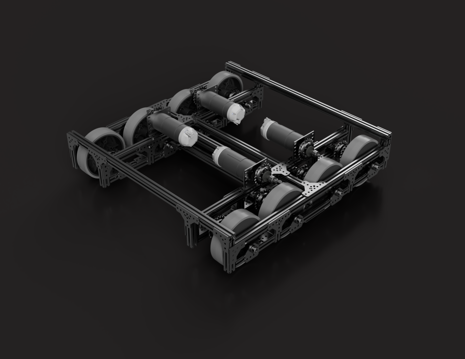 In its most common form, the drivetrain uses the same wheel layout as the two wheel drivetrain (2 traction wheels in the back, 2 omnis in the front), but with one notable difference: all four wheels are powered.