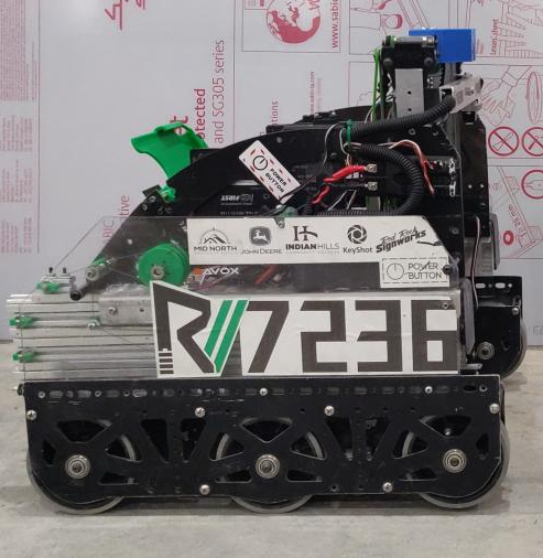 However, this advantage comes with a major loss of traction. For these reasons, many teams choose to use two traction wheels and two omni wheels for a balance between quick turning and traction. The primary advantage of this drivetrain over other tank drivetrains is its ability to easily move across raised terrain when the bot’s center is raised above the terrain.