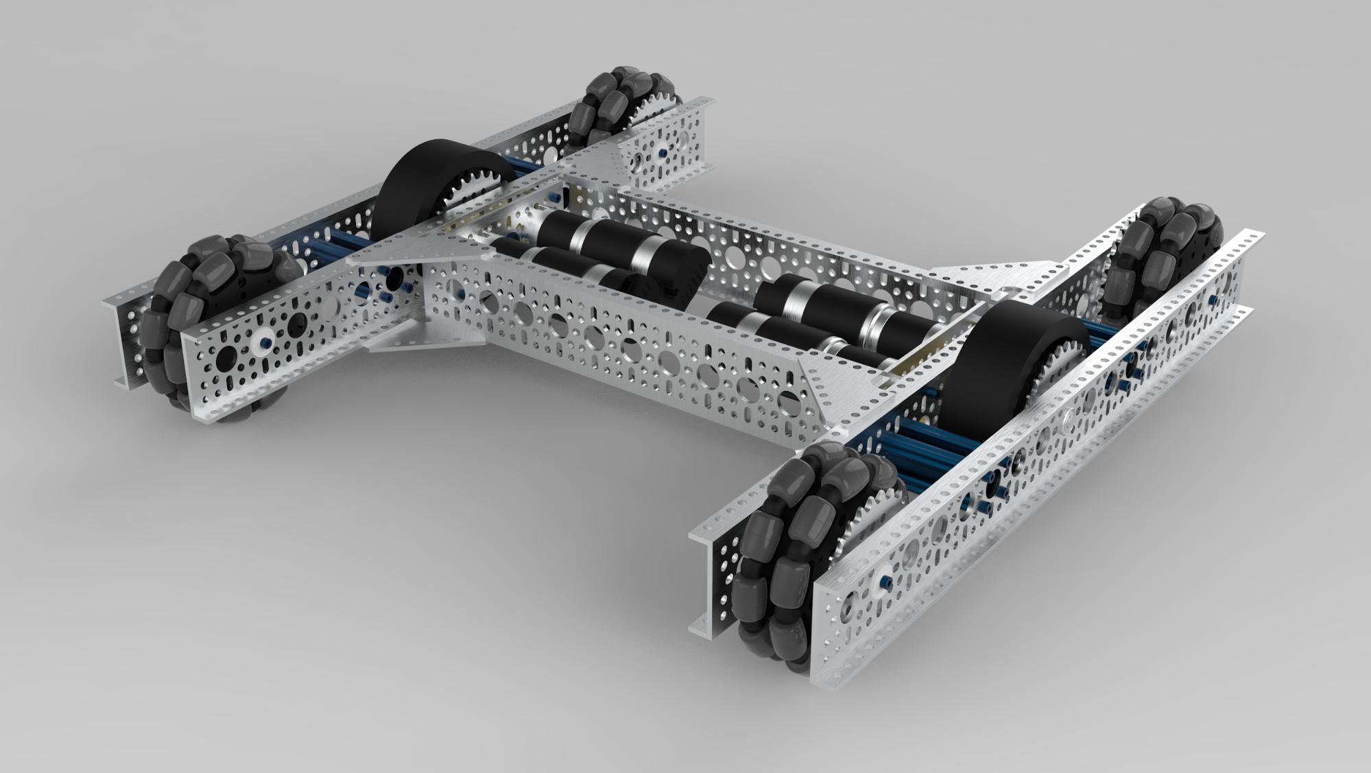 A 6 wheel drivetrain is a common competitive drivetrain in FTC for multiple reasons: it has fantastic traction, great turning, and by having 6 wheels, the drivetrain has more contact with the ground, helping with stability and traction. There are two main types of 6 wheel drivetrains: ones with corner omnis and ones with a drop center.
