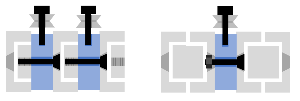 Left: cross section of a 3 stage lift using 3D printed inserts (blue) and SAR2 slides; right: cross section of a 2 stage lift using a 3D printed insert and SAR3 slides. The left approach is also used for Long Robotics slides (discussed below).¶