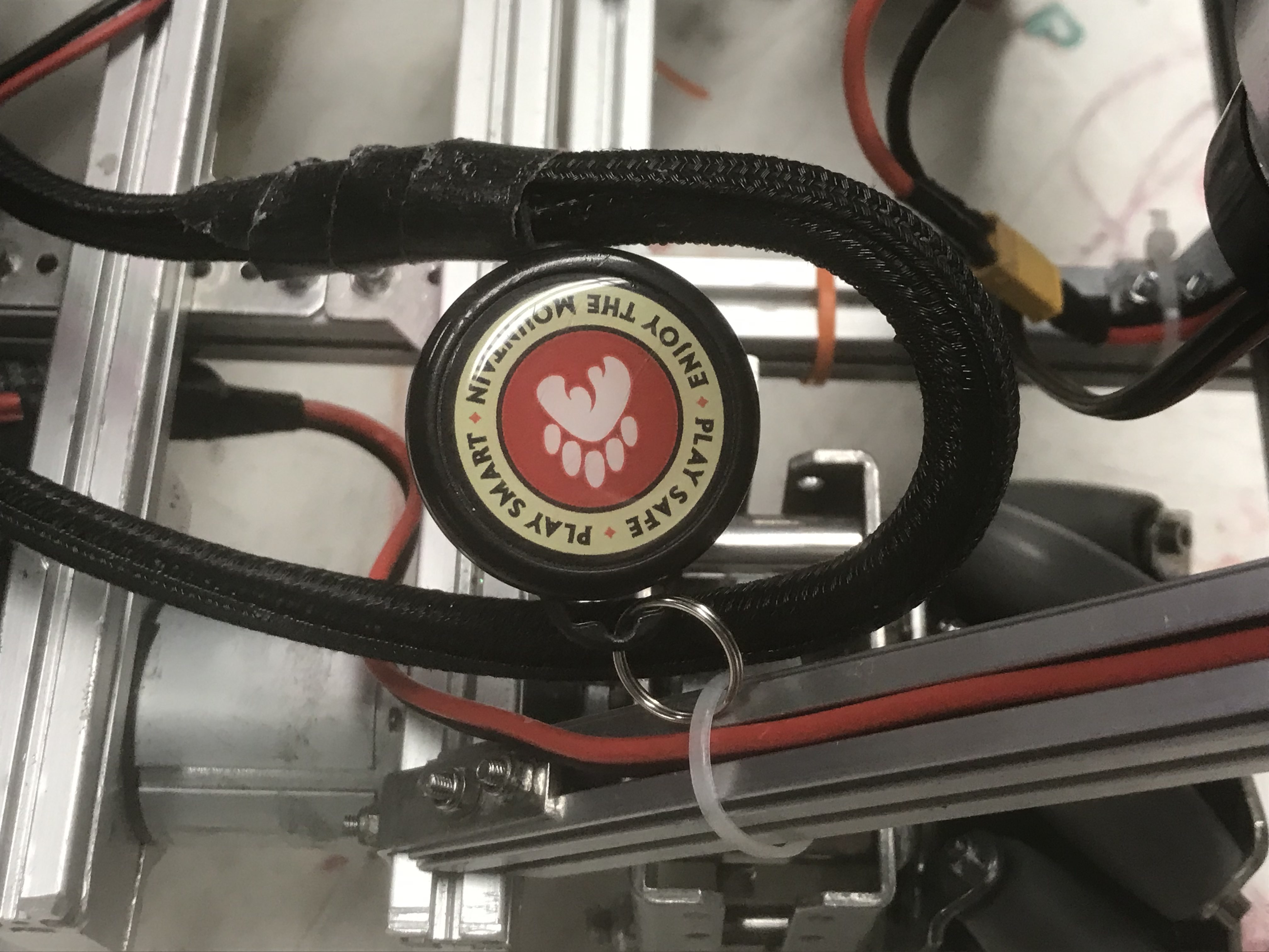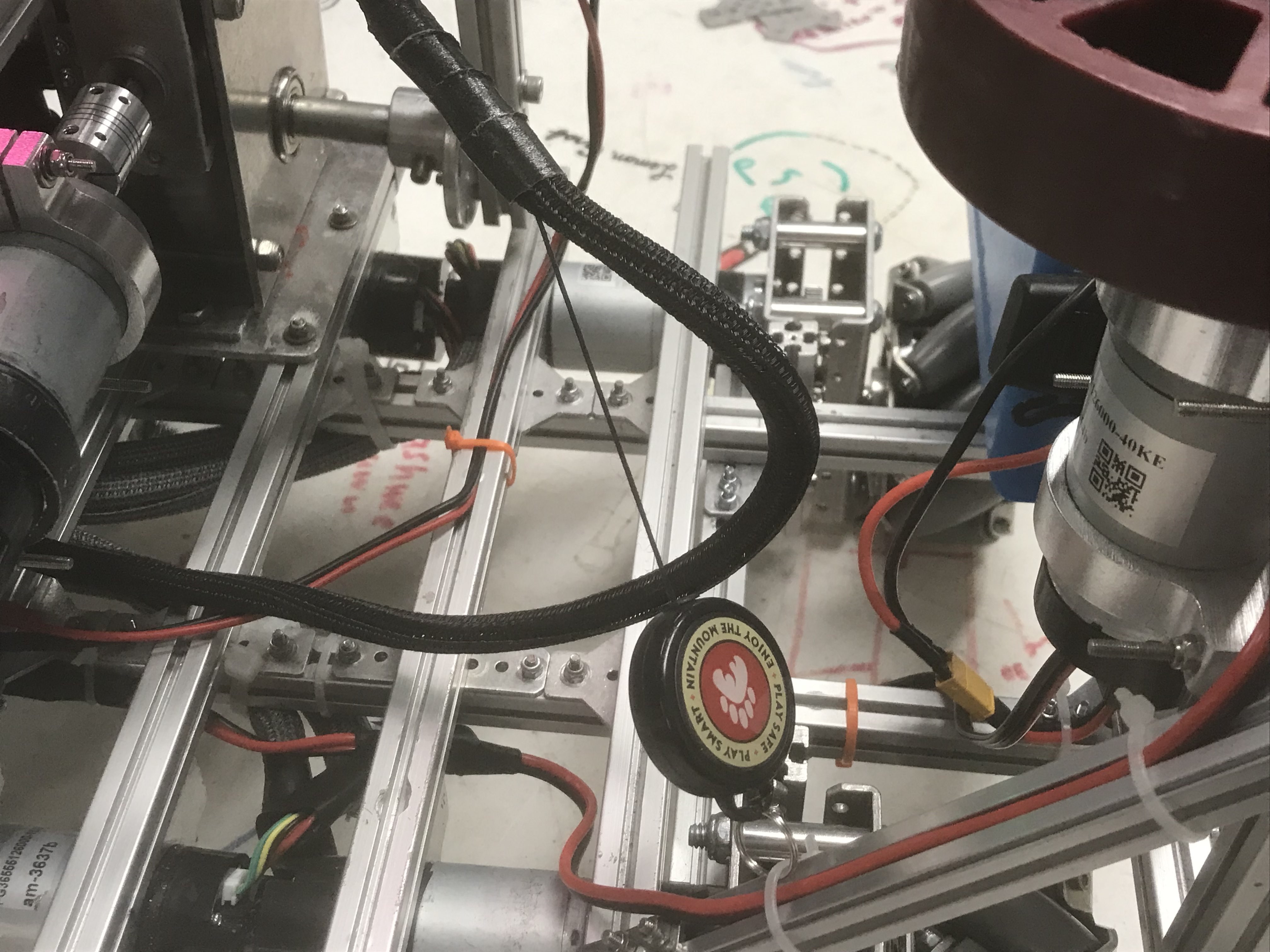 In general, teams should ensure that wires never protrude outside the structural parts of the robot, because they can get caught on other robots or game pieces. This can be accomplished by cable ties or Velcro ties, or by using acrylic plate to keep wires inside.
