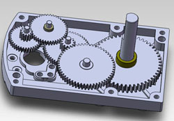 Example of a spur gearbox inside a servo. Note how all gears mesh with only one other gear.¶