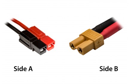 Пример переходника с Anderson PowerPole (A) на XT30 (B). Их можно найти на сайтах ServoCity или REV Robotics.¶