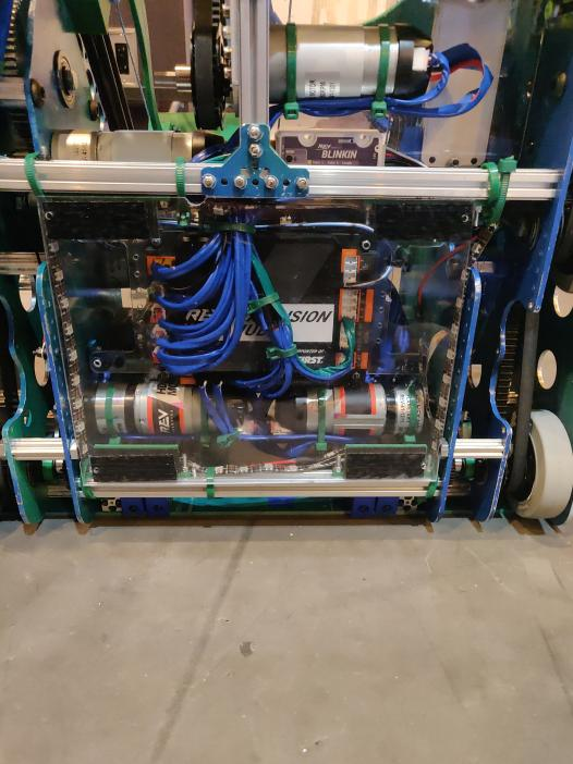Keep wires tucked away from moving mechanisms, and ensure that you will not be at risk of a mechanism snagging a wire. This is a proper application of materials such as acrylic, which allow drivers to see inside the robot while keeping wires out of the way of other robots/game pieces. It is advised for teams to purchase removable velcro ties or cable ties to aid with cable management.